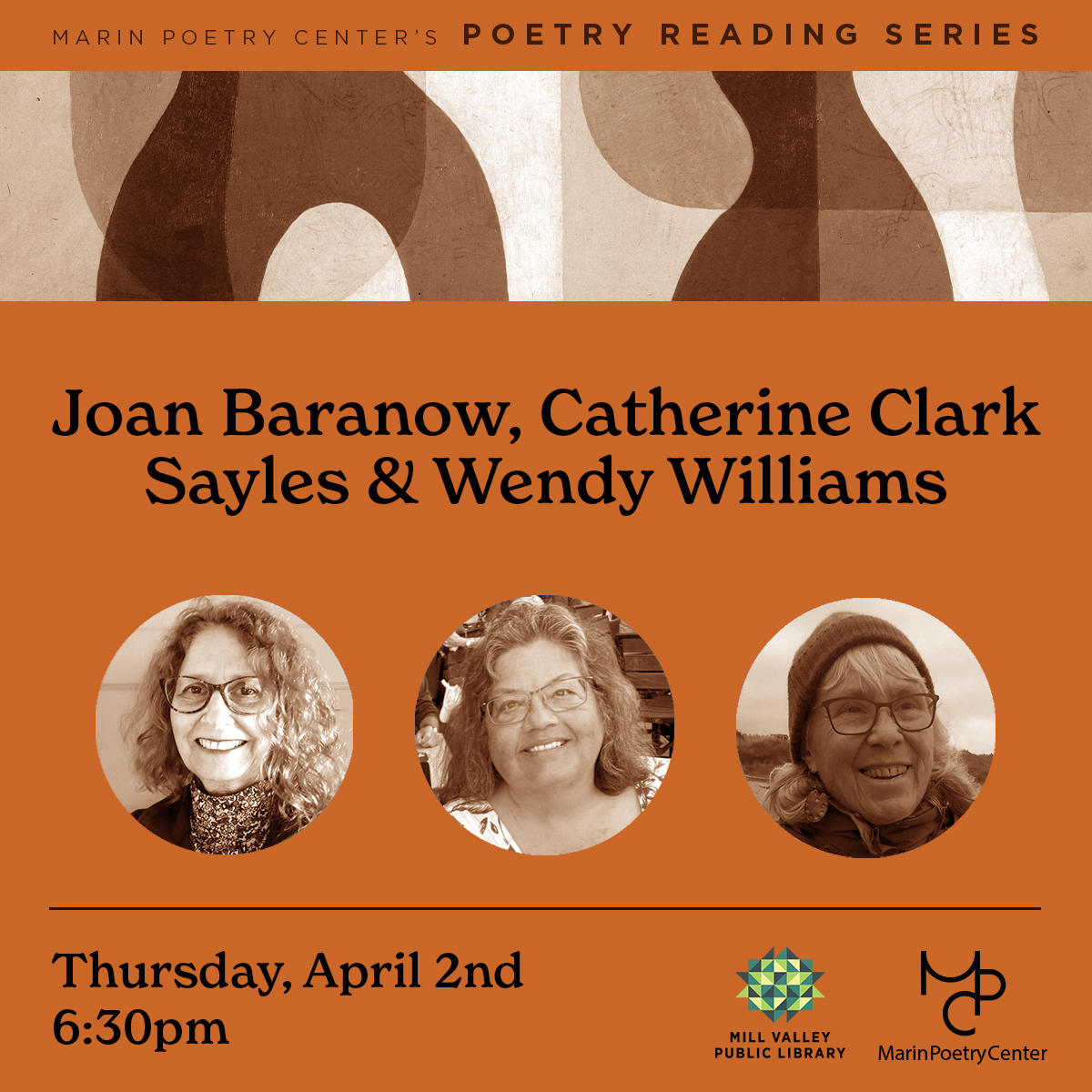 Join us for our monthly Poetry Reading Series featuring Joan Baranow, Catharine Clark-Sayles & Wendy Williams